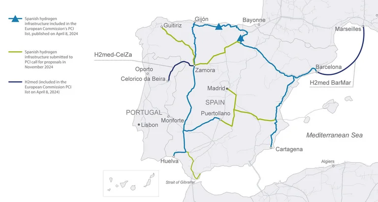 These storage facilities and the Spanish hydrogen hubs, as well as H2med with its Celorico da Beira-Zamora and Barcelona-Marseille sections, were included in the final European list of PCIs in April 2024. In January 2025, the European Commission granted Enagás 100% of the financing requested, from the CEF funds, for the study phase of these first axes of the Spanish Hydrogen Backbone Network and one of the associated storage facilities.